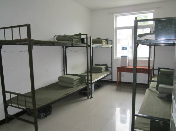 核心提示:學(xué)員宿舍是4-6個(gè)人每間,屬于上下鋪形式的集體宿舍,宿舍里已經(jīng)安裝了包括電風(fēng)扇等設(shè)施。