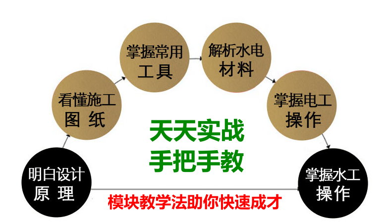授課方法:每天上午9:00~10:30理論課,由水電工程師授課,教會學員識圖方法和電路分析方法。每天10:30~17:30學員實操,自己親自動手操作,老師手把手教,傳授現場施工實踐經驗和技巧。